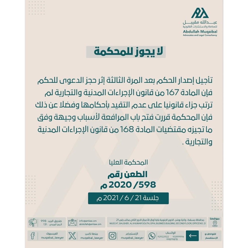 هل يحق للمحكمة تأجيل إصدار الحكم بعد المرة الثالثة لحجز الدعوى للحكم؟